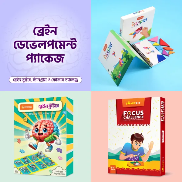 ব্রেইন ডেভেলপমেন্ট প্যাকেজে তিনটি কিট আছে। ব্রেইন বুস্টার, ট্যানগ্রাম আর ফোকাস চ্যালেঞ্জ।
